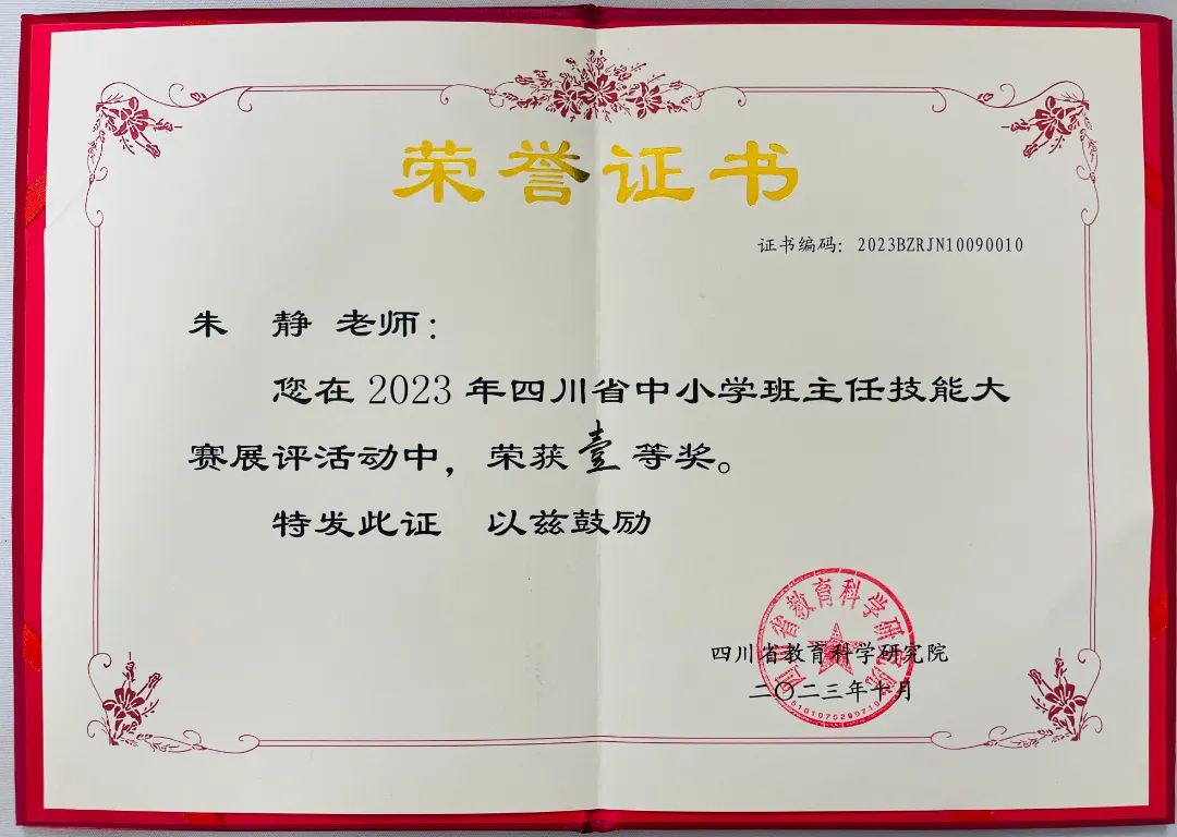 【喜报】热烈祝贺朱静老师在2023年四川省中小学班主任技能大赛展评活动中荣获省一等奖