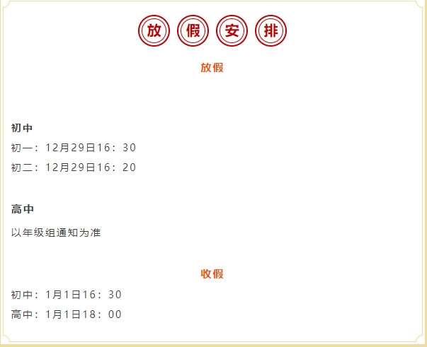 根据2024年元旦放假日程安排,现将我校2024年元旦放假事项告知给您,望您认真阅读,配合支持学校工作。