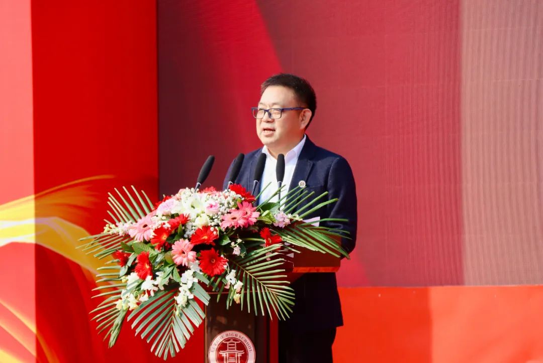 陈云超代表学校致辞,为同学们送上来自学校和师长的祝福。他希望同学们胸怀热爱、追求卓越,在未来的日子里,趁阳光正好、趁青春正盛、趁芳华正美、趁志气正高,去奋斗,去努力,去成为一名“大写泸高人”!