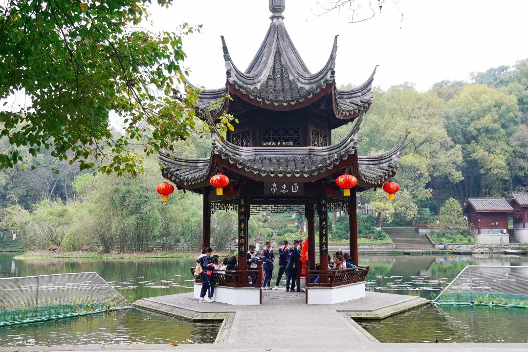 山清水秀的亭台湖畔边