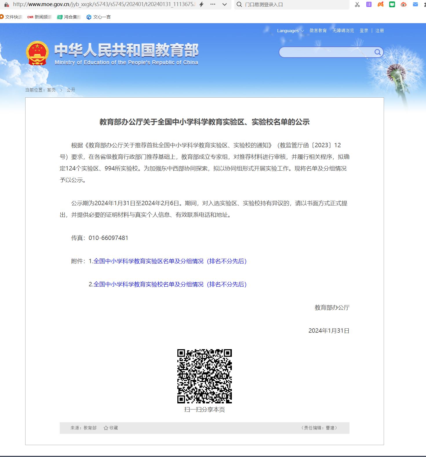 根据《教育部办公厅关于推荐首批全国中小学科学教育实验区、实验校的通知》(教监管厅函〔2023〕12号)要求,在各省级教育行政部门推荐基础上,教育部成立专家组,对推荐材料进行审核,并履行相关程序,拟确定124个实验区、994所实验校,并以协同组形式开展实验工作。1月31日,教育部公示了首批全国中小学科学教育实验区、实验校名单,泸州高中成功入选“全国中小学科学教育实验校”,这意味着泸高科学教育将迈上一个新台阶。