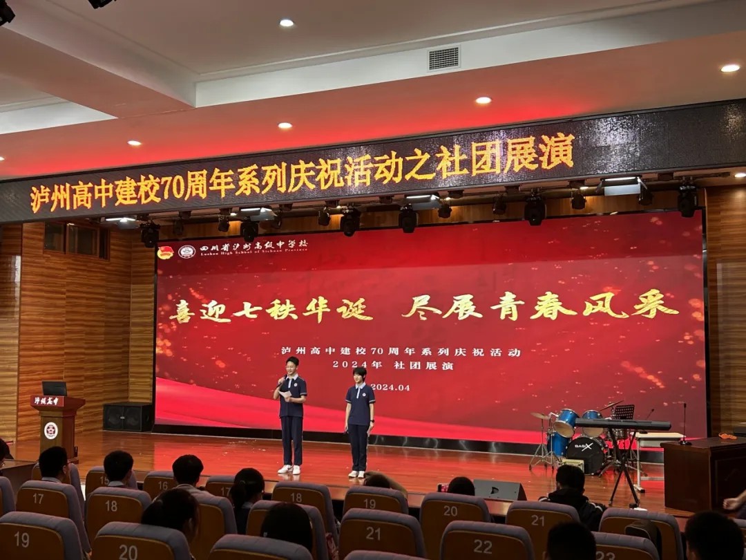 为迎接泸州高中建校70周年,展示学生社团风采,2024年4月13日忠山校区学生社团在泸高大讲堂举行了学生社团联合展演。