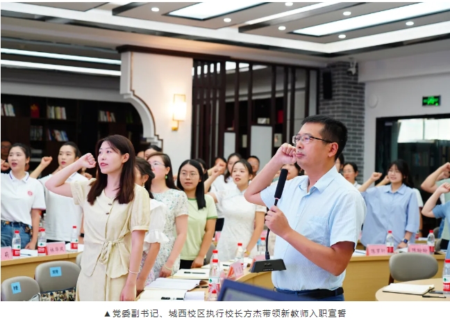 8月19日上午举行岗前培训开班仪式,学校党委书记、校长陈云超在开班仪式上致辞。党委副书记、城西校区执行校长方杰,泸州高中副校长、忠山校区执行校长明安田,副校长刘春梅、纪委书记刘春宇,副校长李奎、刘彬、翟晓根,全体中层干部、教研组长、新分新调教师参与。