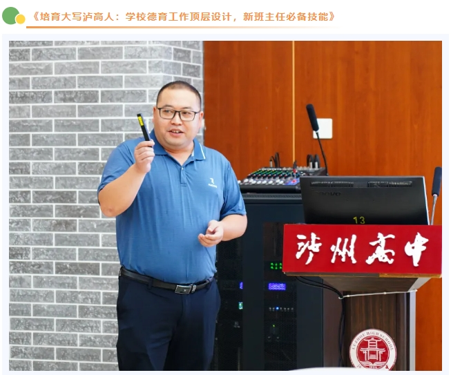 刘彬从泸高的育人目标、办学愿景、学校精神等让新老师们全面深入地了解了泸高文化;又从如何管好班级、班主任应该具备的能力和素养等方面对新教师们在班级管理上给出建议。