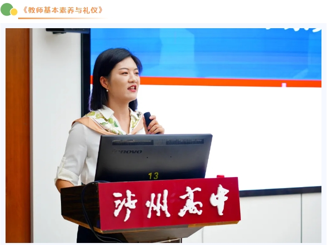 泸州高中初中部副校长张琦用深厚的教育理论和实践经验,从“为人原则”“技能实力”“心理素养”等方面为新教师详细讲解教师在职业生涯中的基本素养和礼仪规范,帮助新教师树立良好的职业形象,提升自身的综合素质。