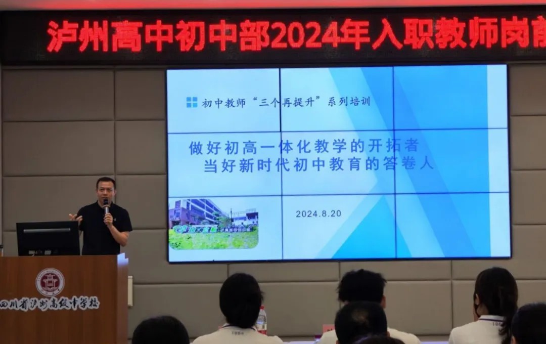 2024年8月22日,泸州高中初中部2024年入职教师岗前培训在城西校区圆满结束。来自不同地区经验丰富的优秀教师怀揣着对教育的热忱与憧憬踏上这片教育的沃土,为泸州高中初中部的发展带来了新的生机与活力。