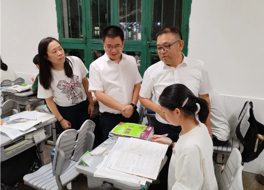 在走访慰问之余,陈云超一行深入走访巡查基地班学生学习情况,勉励同学们树立志向、努力拼搏。