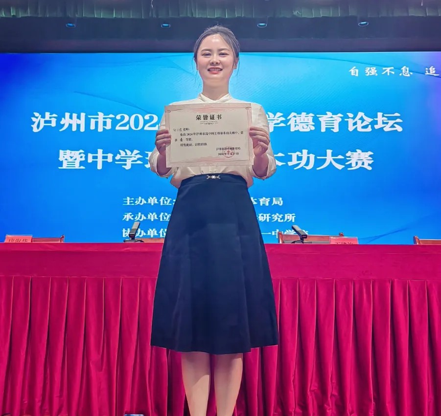 近日,在泸州市2024年中小学德育论坛暨班主任基本功大赛中,泸州高中向小霞老师荣获高中组一等奖。