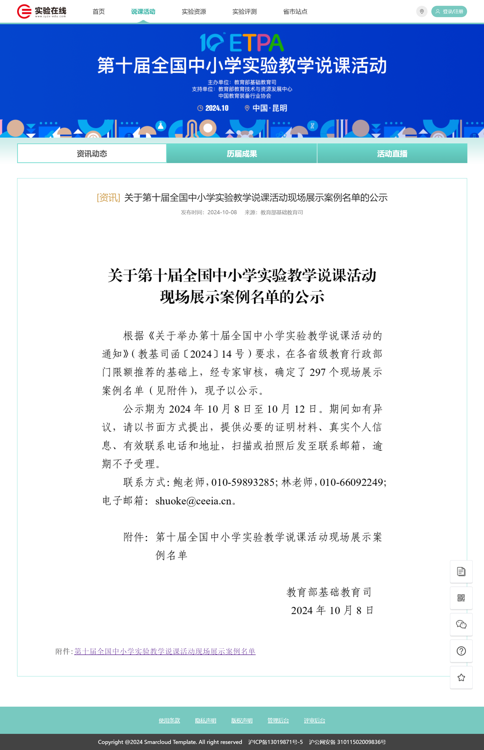 第十届全国中小学实验教学说课活动人气之星投票入口: