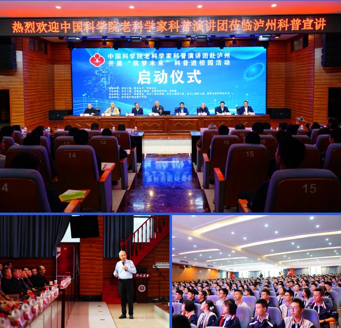 为进一步深化立德树人工作,激发青少年的科技兴趣,引导青少年提升科学素养,培养科技创新精神,2024年11月11日下午,中国科学院老科学家科普演讲团一行来到泸州高中忠山校区,在泸高大讲堂开展了“筑梦未来”科普进校园活动启动仪式。市委常委、组织部部长、市关工委主任米亮,市关工委驻会班子成员办公室、教工委、科工委、 基金会有关同志,市委老干部局、市教育体育局、市科协、新华文轩泸州分公司主要负责同志,江阳区、龙马潭区、纳溪区关工委执行主任,泸州高中主要负责同志以及相关人员出席活动。
