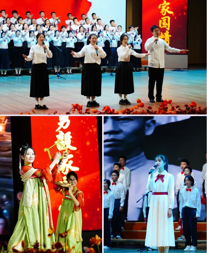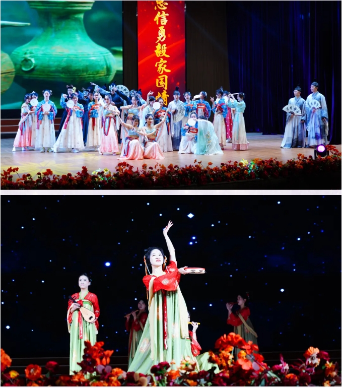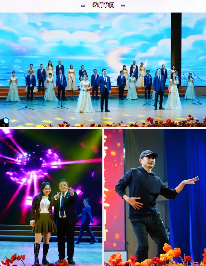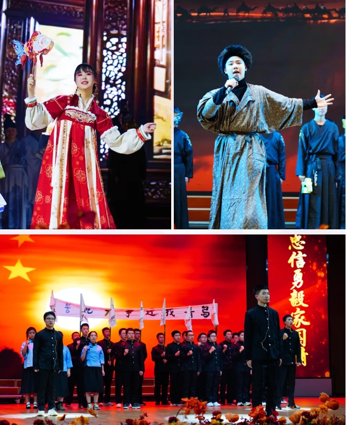 11个班级节目、2个年级组节目、1个合唱团节目和1个教师独舞为在场师生带来了一场无比丰富的视听盛宴。台上演员们服饰考究、妆造精美、语言生动、动作丰富,形式多样地展现了当代青年学生和教师的良好精神风貌。台下观众们时而挥手互动,时而热烈鼓掌。会场气氛被一次次推向高潮。