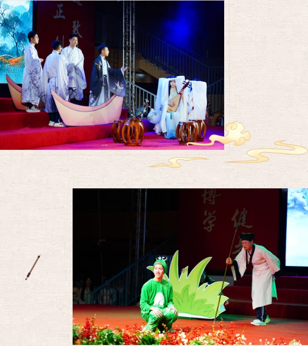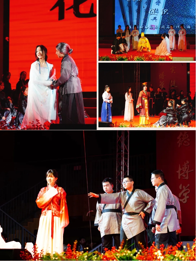 舞台上,演员们粉墨登场,演绎经典。表演的剧目包括《祝福》《花木兰》《林黛玉进贾府》《琵琶行》《荷花淀》 等,每个节目都是对经典作品的致敬。同学们以创意无限的舞台表现,让经典故事焕发了新的生命力。