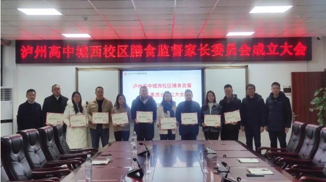 会上,家长代表们签署了监督责任书,接过了任职聘书,肩负起了与泸州高中携手共进、共同守护师生饮食健康的责任。