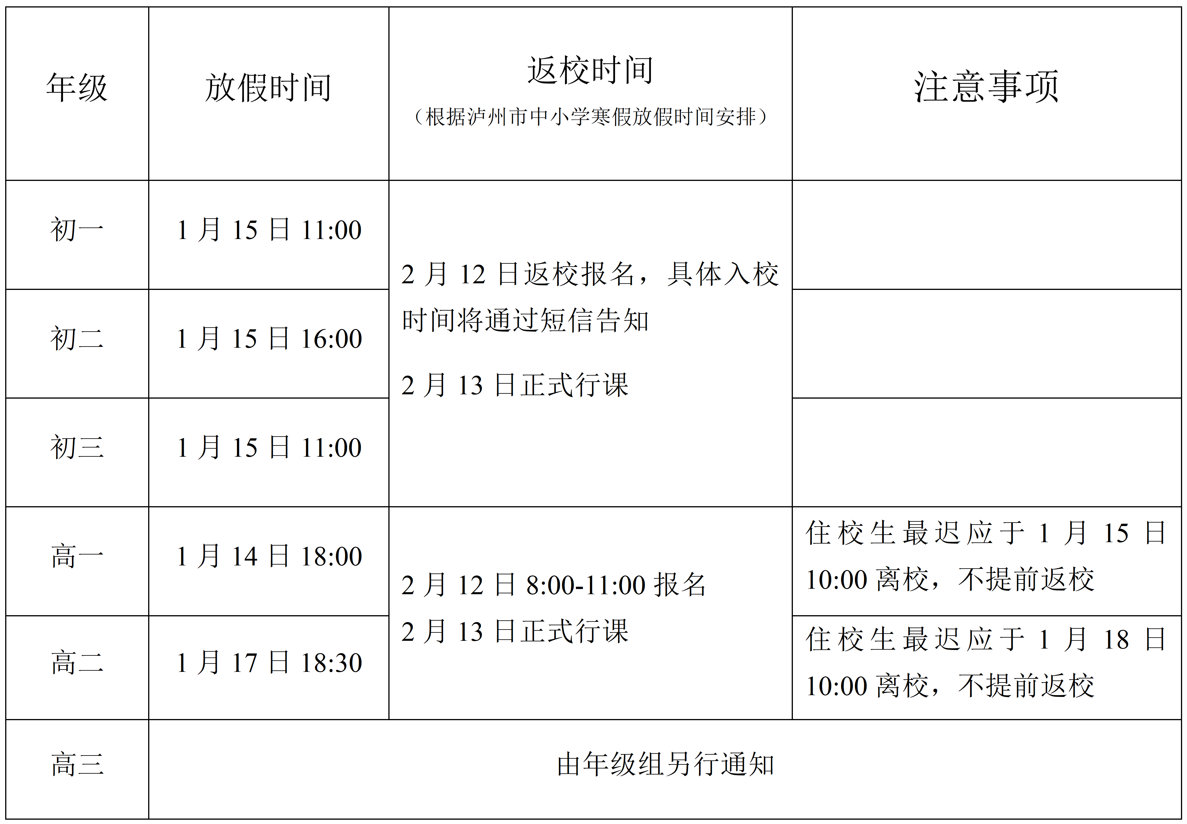 一、放假与返校安排