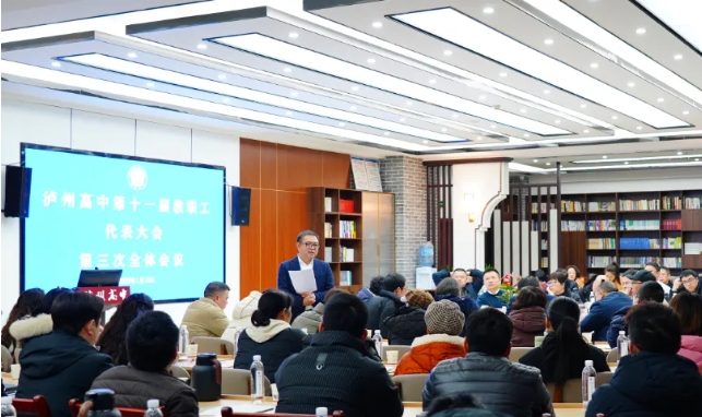 2023年1月18日,泸州高中在忠山校区致知楼聚贤书屋隆重举行了第十一届教职工代表大会第三次会议,共同谋划学校未来发展的蓝图,共商发展大计。