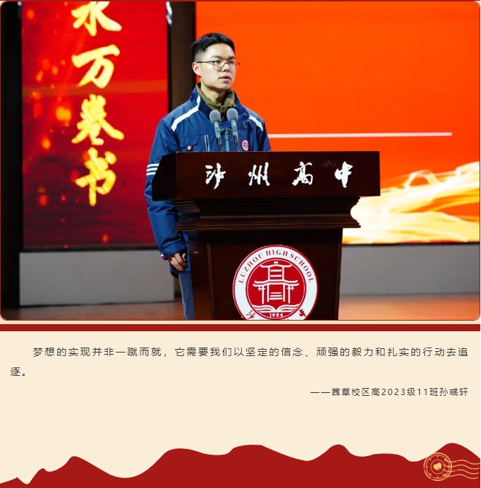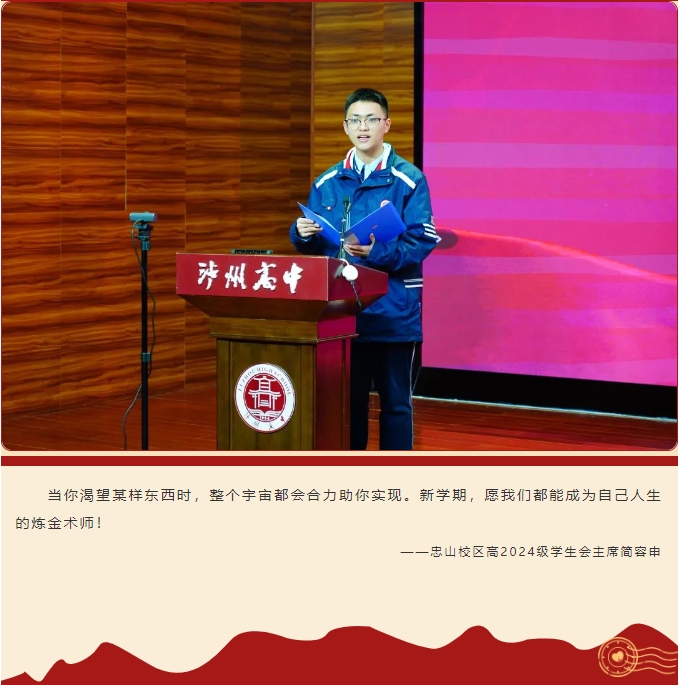 忠山校区简容申、城西校区罗程杰、茜草校区孙彧轩作为学生代表发言,