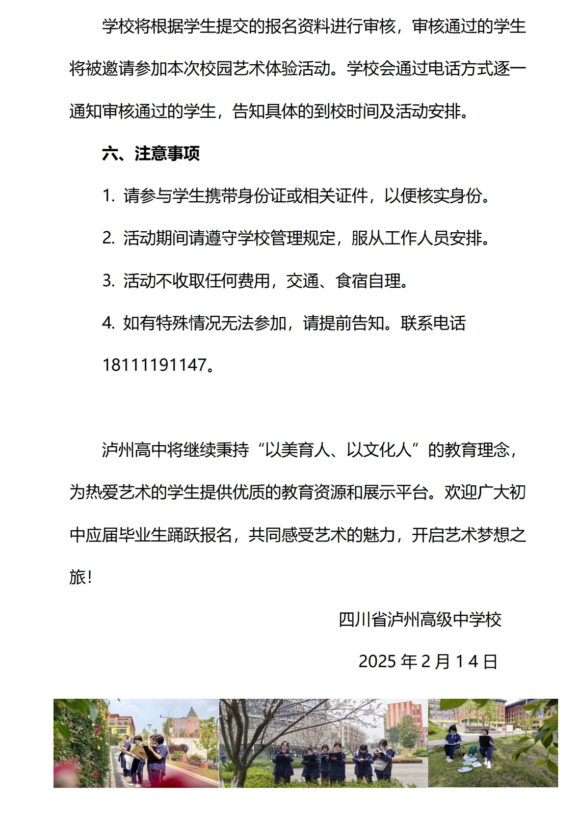 泸州高中2025年校园美术体验活动通知