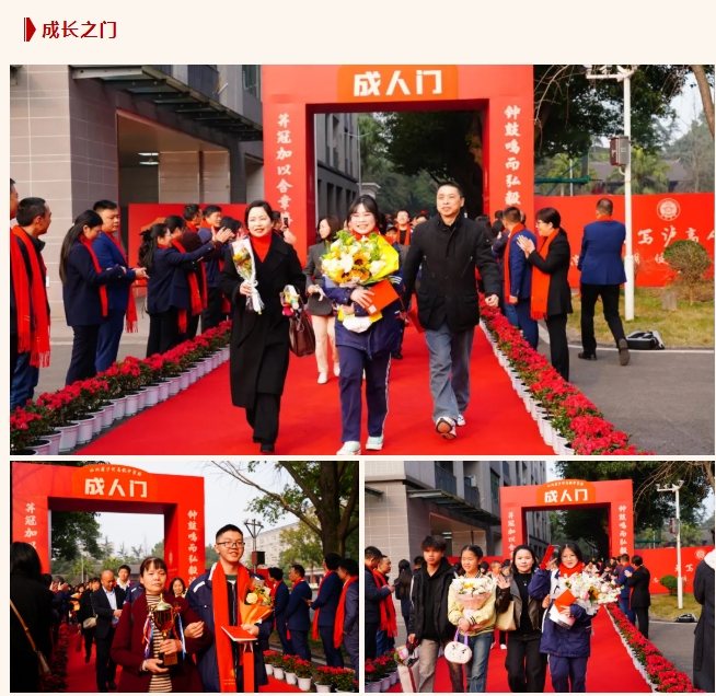 上午九点,高2022级学子们在老师和家人的陪伴下,昂首阔步跨越“成人门”,迈向人生新阶段。他们以挺拔之姿叩响十八岁的大门,用自信的笑容,以青春之名,向世界宣告成长的力量。