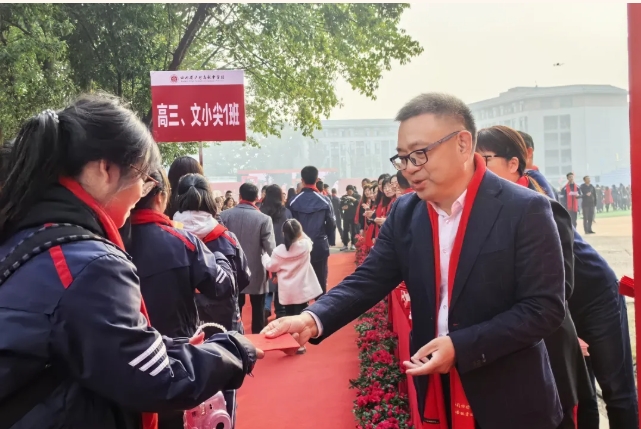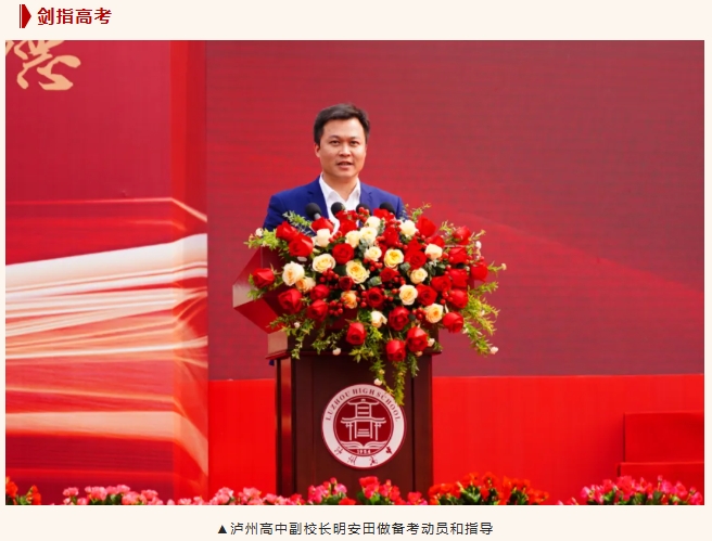 泸州高中党委书记、校长陈云超代表学校致辞,为高三学子们送上了最真挚的祝福。他激励同学们,要成为一个真正大写的人,要用一生去追求和践行:厚植家国情怀,铸就青春坚实底色;传承反哺之恩,书写岁月温情长卷;践行责任担当,奏响时代奋进强音。