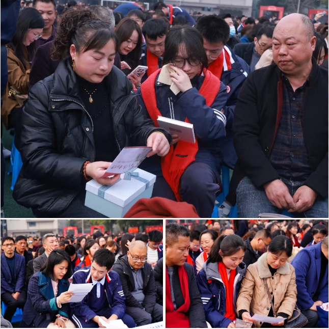 同学们张开双臂,深情拥抱身旁的亲人。家长与孩子现场互读家书,互诉衷肠。
