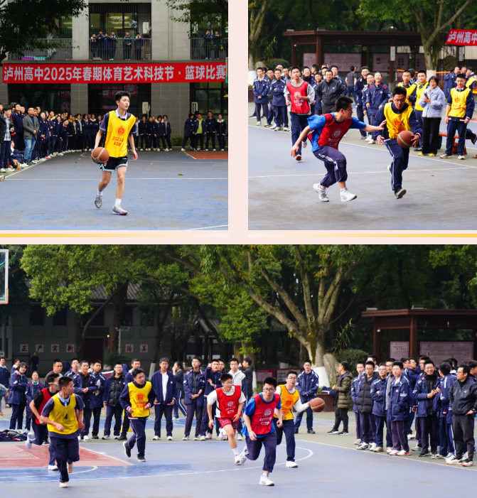 3月初,泸州高中2025年体育艺术科技节开幕以来,篮球、足球、羽毛球、乒乓球等体育赛事先后开赛。篮球比赛现已进入八强争夺战。
