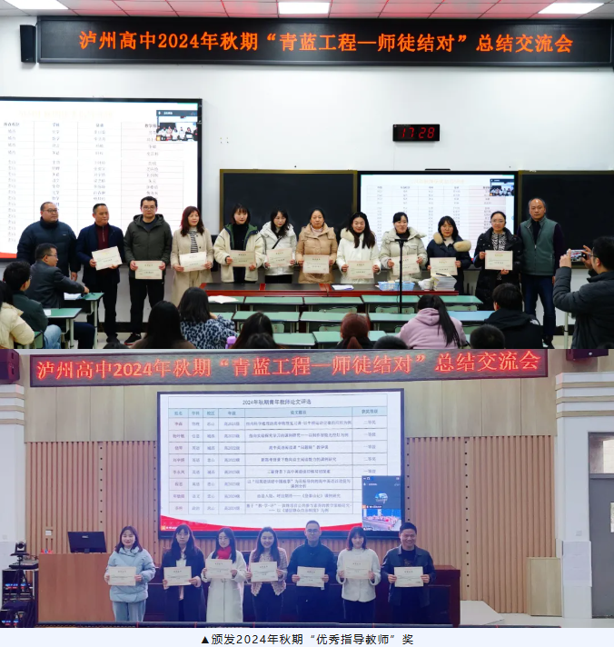 “青蓝工程”是泸州高中青年教师成长和发展的重要平台,也是骨干教师发挥引领、示范作用的舞台。为继续发扬这一优良传统,切实做好教师培养工作,3月中旬,泸州高中分别在忠山校区致知楼108会议室和城西校区200人厅举行2024年秋期“青蓝工程”总结会。会议由茜草校区教务科副主任石伟主持。