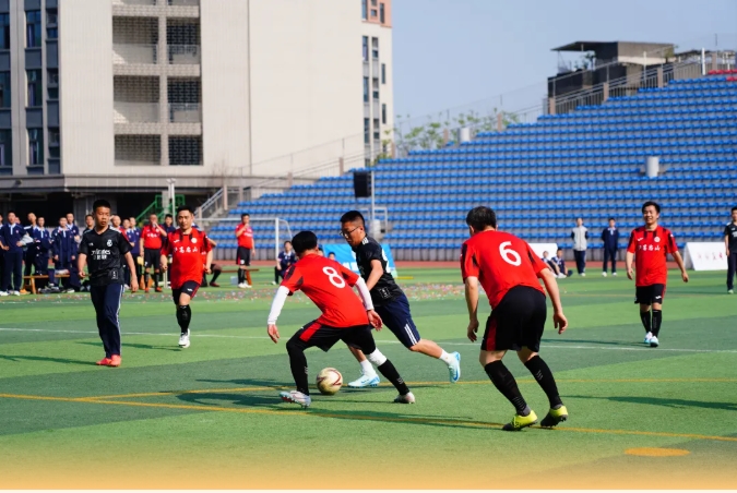 在绿茵场上,一场师生足球友谊赛正激烈展开。一方是本届体育艺术科技节校园足球联赛的冠军队伍,另一方则是学校的教职工男子足球队。冠军终将花落谁家,且看这场巅峰对决。