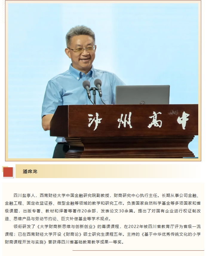 泸高大讲堂(38)| 西南财大潘席龙副教授在茜草校区开展“从财商看高考”专题讲座