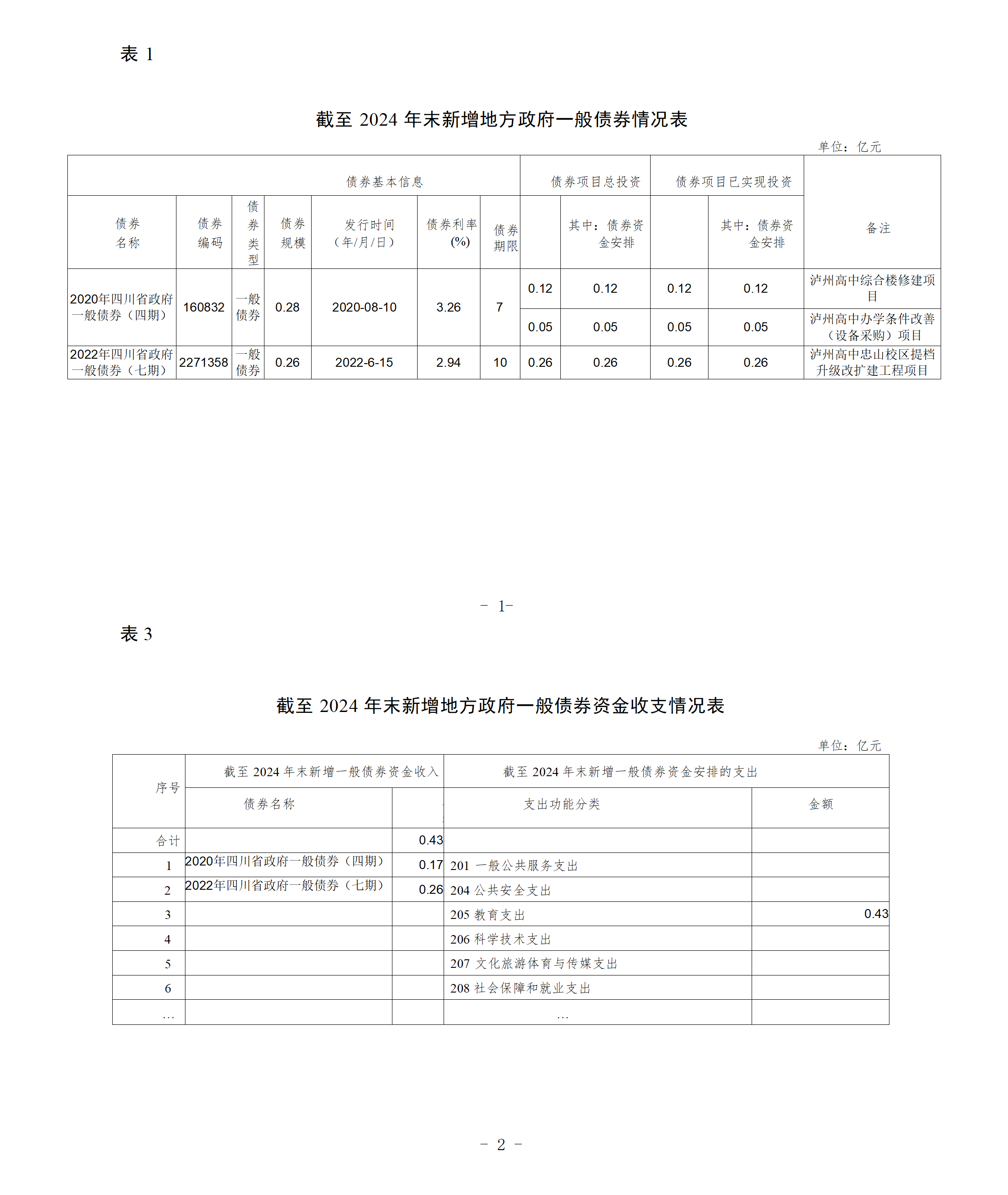 四川省泸州高级中学校地方政府债券存续期信息公开