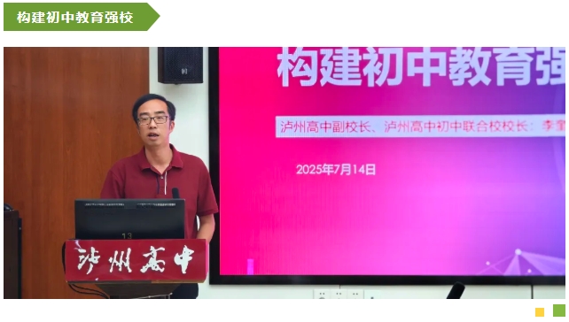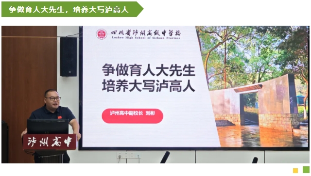 刘彬副校长系统梳理泸高文化脉络,溯源办学历史,阐释“泸高精神”内核与立德树人使命,明确以培养“胸怀家国、全面发展”的“大写泸高人”为目标,强调通过卓越师资建设支撑高质量育人,深化新时代“大先生”的教育担当。