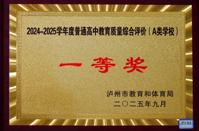 9月29日,泸州市召开2024—2025学年度初高中教育质量综合评价总结会。泸州高中获评全市高中教育质量综合评价(A类学校)一等奖。
