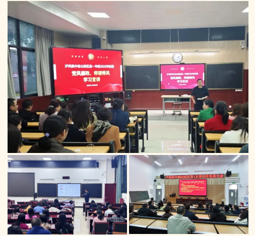 2025年10月31日,泸州高中三校区12个党支部同步召开党员大会并开展主题党日活动,以理论武装筑牢育人根基,以纪律建设涵养优良师风。