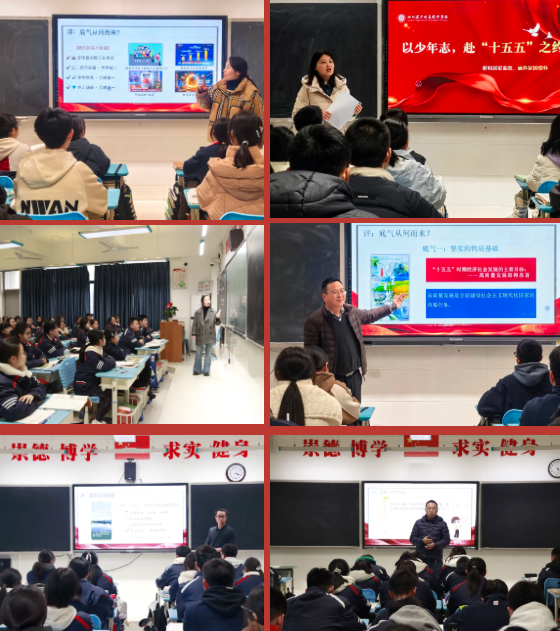 为引导高中生将个人理想融入国家发展大局,在“十五五”规划的时代蓝图中锚定成长方向,12月16日下午,泸州高中城西校区以班级为单位,集中开展“以少年志,赴‘十五五’之约”主题班会活动。本次活动通过“培训先行、学生主讲、师者引领”的递进式设计,让家国情怀教育在互动中落地生根,成为践行学校“立德树人”根本任务的生动实践。