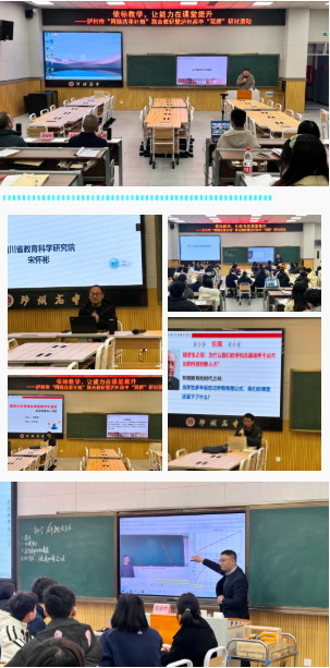 学校积极统筹三校区资源,为各学科提供高水平研讨平台。语文学科在忠山校区探讨“依标教学,让能力在课堂提升”,数学学科在城西校区关注“教学过程与核心素养落地”,物理学科在茜草校区聚焦“科学思维赋能素养发展”。我校教师石伟、官孝勇、陈治岑等分别执教研究课,李成香、陈建军、吴顺国等开展专题讲座,与来自龙马高中、泸县二中及省市级教研专家共同呈现了高质量的教学与研究对话。