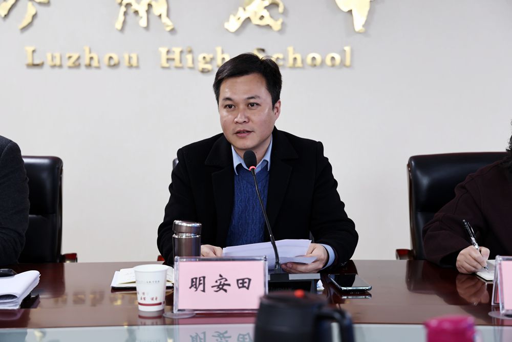 3月6日下午,泸州高中2026年春期开学工作会议在忠山校区会议室召开,全体中层以上干部参会,明安田校长主持会议。