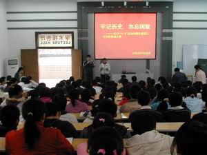 下午4:30,高二年级200多名同学在学术报告厅举行了以“牢记历史.不忘国耻”为主题的爱国主义诗朗诵比赛,选手们或激昂,或低沉,时而义愤高昂,时而优美抒情的朗诵,不仅给同学们带来了美的感受,又使同学们受到深刻的爱国主义精神的鼓舞。赵校长的点评和邓力瑞老师的朗诵将整个活动推向了高潮。