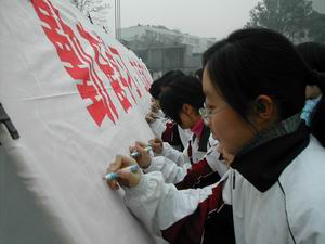 下午1:00,高一年级10个班500名青年学生排着整齐的方队前往百子图文化广场参加四川省青年文化艺术节闭幕式。同学们庞大的阵容,良好的秩序,精湛的表演,获得团市委、团省委领导的一致好评。