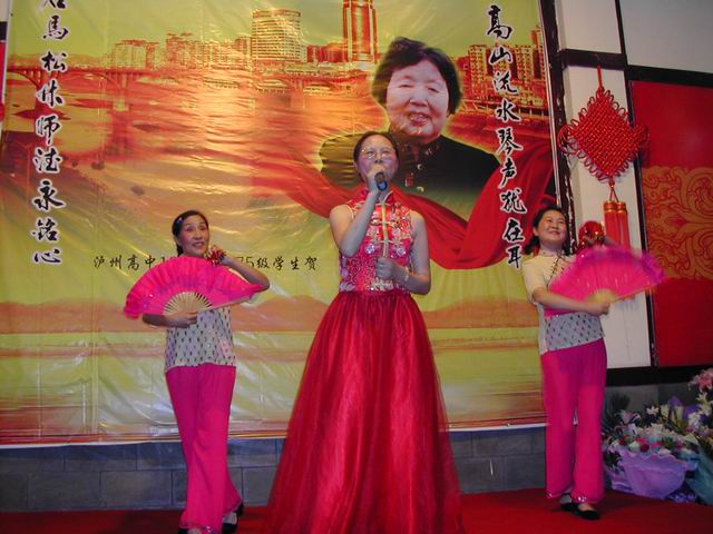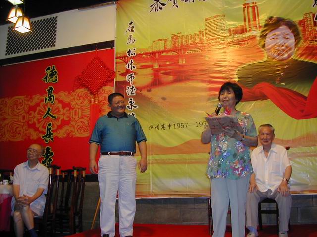 7月12日,泸州高中57级至75级校友300余人隆重聚会,为胡瑾老师80寿辰祝寿。胡瑾老师是泸高1954年建校元勋之一,教学业绩十分突出,与另两位数学教师金祖孟、胡本钧合称“金二胡”,是当时泸州专区、宜宾地区最著名的教师之一。胡瑾老师在泸高工作20余年,培养的学生数以千计,这些学生毕业后在不同工作岗位上大多取得了显著成绩。现在,校友们为胡瑾老师80寿辰隆重祝寿,就是要借机表达对恩师的景仰和感激之情。胡老师许多在外地工作的学生纷纷赶来参加聚会,有的甚至专程从西藏最偏远的阿里地区赶回来,就表明了胡老师在他们心中的位置。本次祝寿活动非常热烈隆重,献花、献礼、献辞,不一而足;校友们还排练了不少节目,唱歌、跳舞、朗诵,异彩纷呈。有的校友年过六旬,也登台献艺,让人感动。