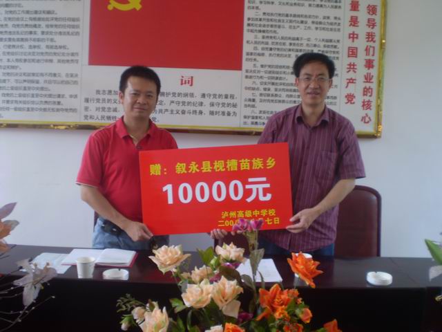 ,泸州高中副校长王晓云及办公室副主任王志华等一行3人,冒着酷暑,远赴叙永贫困乡——枧槽苗族乡,开展扶贫支教工作,送去了扶贫款10000元,并接收了该乡两名初中毕业生到泸高学习。